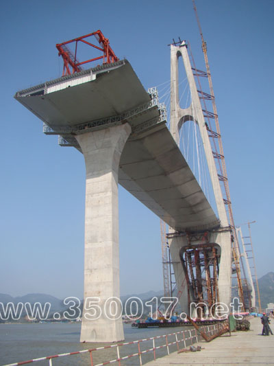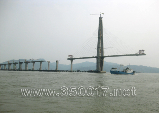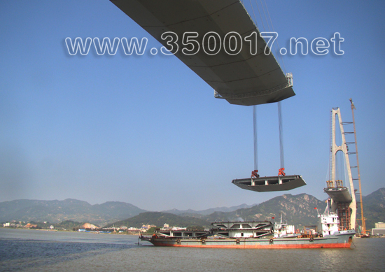 琅岐闽江大桥长2675米,主桥长1280米,主跨为680米,桥面宽28.7米。主梁为流线型扁平整体钢箱梁、单箱三室结构,全桥共97个节段,节段最大重量达250吨,起吊高度65米,拼装精度及线型控制要求高,施工难度大。