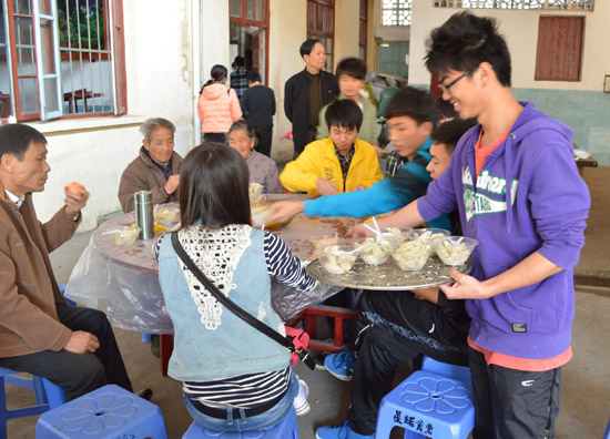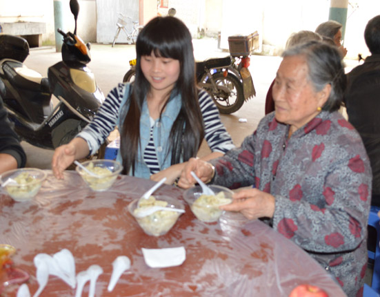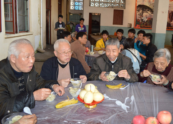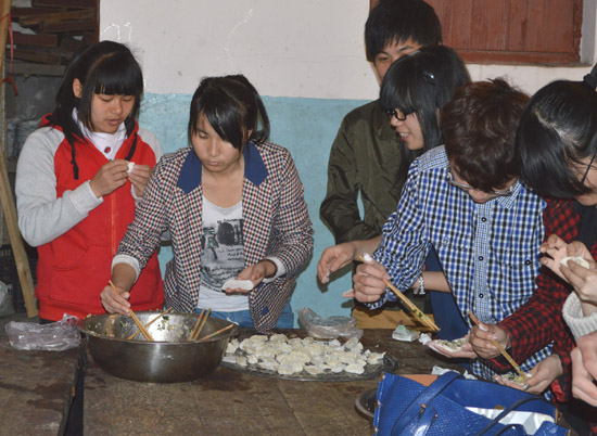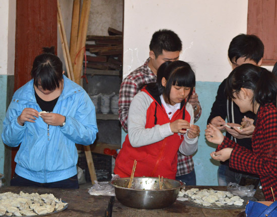 福建农大东方学院的学生周末在琅岐星辉村开展为老年人送温暖活动,他们包饺子,煮饺子,将一碗碗热腾腾的饺子,送到老年人手上。大学生还制作张贴《二十四孝》宣传展板,进行尊敬老人,促进社会和谐的宣传。