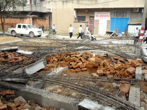 5月10日上午8:40分,琅岐城管大队组织对已停工多日的乐村幼儿园斜对面一处违法建筑进行拆除。共推倒墙体3面,剪断钢筋200余根。