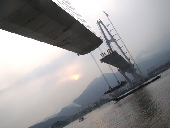 琅岐闽江大桥长2675米,主桥长1280米,主跨为680米,桥面宽28.7米。主梁为流线型扁平整体钢箱梁、单箱三室结构,节段最大重量达250吨,按双向四车道加紧急停车带设计,预留双向六车道,居世界同类桥梁前10名。