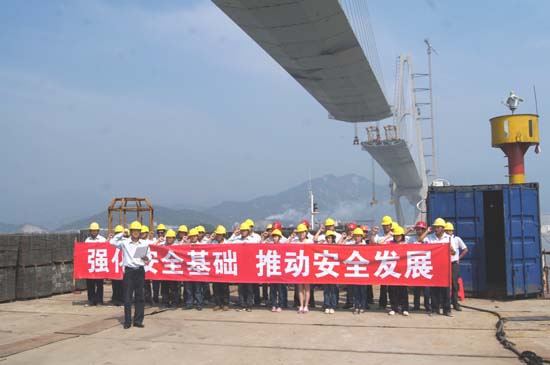 在全国“安全生产月” 的首日,中铁大桥局琅岐闽江大桥Ⅱ标段项目部认真贯彻落实国务院有关安全生产的精神,积极响应中国中铁总公司在全国“安全生产月” 发出的号召,在4号主塔墩平台举行了安全生产宣誓仪式,项目部全体员工用高亢、洪亮的嗓音面对国旗、中国中铁总公司旗、中铁大桥局集团公司旗进行了庄严宣誓!