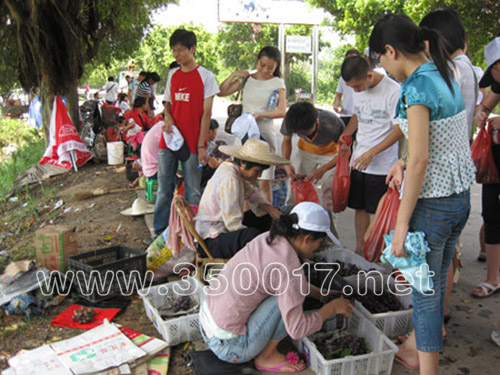 公路两边摆有许多兜售葡萄的小摊贩,绵延许长,熙熙攘攘,欢声笑语此起彼伏,占道购买葡萄的汽车排成长串,形成一道独特的风景线。