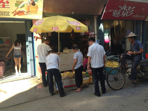 日前,琅岐城管大队二中队全体队员在中队长的带领下,冒着酷暑,对辖区内的占道经营进行规劝整治,整治的重点从镇政府门口路段及八一七街,共劝返流动摊贩13起,纠正店外店9起。