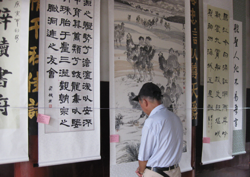 “墨舞琅山”书画展,由琅岐镇文联主办,琅岐书画社、琅岐实验小学协办,正在琅岐衙前祠堂展出。本次展览书画作品繁多,档次较高,受到书画爱好者欢迎,参观者络绎不绝。