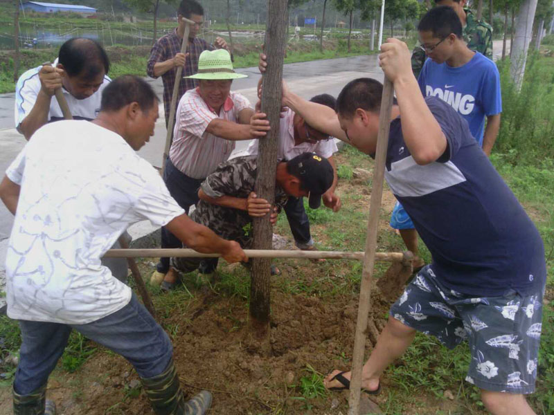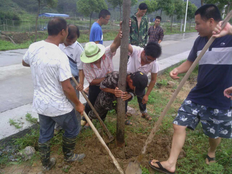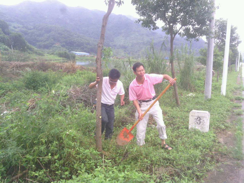 8月24日上午,凤窝村书记陈起平、主任朱锋带领全体村干部清理扶正凤窝至董安沿途护道树。受今年第12号台风“潭美”影响,凤窝村至董安村的路段,有几十棵沿路护道树严重倾斜,有的树遭拦腰折断,严重影响交通安全和道路景观。凤窝村全体干带着锄头铁铲,沿路清理扶正倾斜折断的护道树。较大的树由于树根较深,人力有限,还叫来了挖掘机协助。此次行动充分发扬了党员的先锋模范作用, 展现新时期下党员干部的责任感和良好的精神面貌。