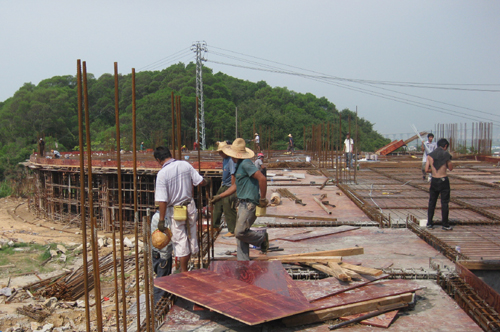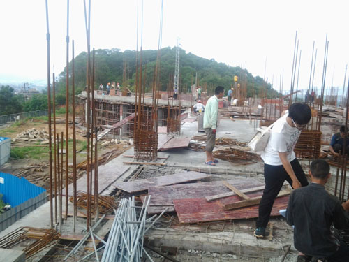 琅岐中学校安基建全面展开,新教学大楼建筑设计总面积10718平方米(其中附属工程面积为4645平方米),工程投资一千八百万,由福建东菱建筑工程有限公司承建。目前新教学楼建设如火如荼,建筑工人冒着酷暑紧张施工。前一阶段由于山地凿石,施工难度大,基础建设花费时间多,耽误了一些时间,现在每天有几十个工人在紧张施工,场面热烈,大楼第二层模板已经搭建,正在铺设钢筋,日内将浇灌水泥。据工地技术员说,今后十几天将完成一层,估计整楼主体十月底可封顶。