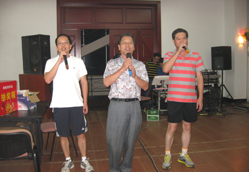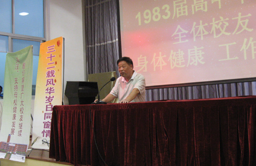 在茶话会上,学校领导致辞,师生热烈发言,许多深刻的感言令人驰思遐想;在联欢会上,大家忘情歌舞,欢声笑语,如痴如狂;在聚餐宴上,师生频频举杯畅饮,情意绵绵,高情远致。正是“莘莘桃李携手共话师长恩,三十二载风华岁月同窗情”,师生情,同学谊,演绎得淋漓尽致。