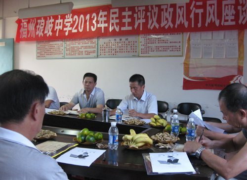 23日下午,琅岐中学召开2013年民主评议政风行风座谈会。学校民主评议政风行风领导小组成员、学校聘任的民评代表出席了会议。会议由校党支部书记翁锦锋主持。