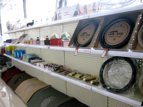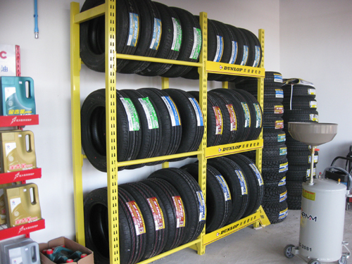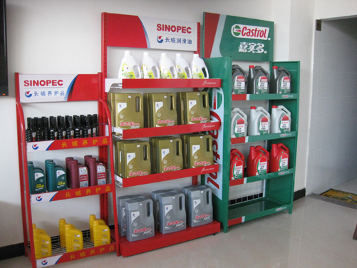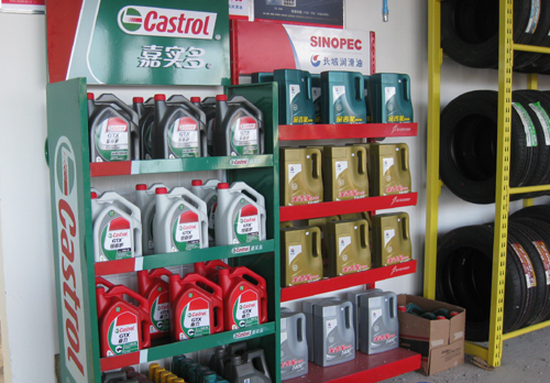汽车精品超市——邓禄普、三角等各种品牌轮胎以及嘉实多、长城等各种机油。
