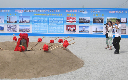 有关领导为项目奠基培土、