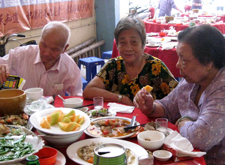 今年重阳节,琅岐星辉村300多位老人相聚在“老人之家”,摆上30几桌酒席,大家谈笑风生,吃吃喝喝,还拿“太平面”红包。琅岐镇有关领导到场向老人家表示祝贺,到处是爽朗的笑声,显得格外热烈。