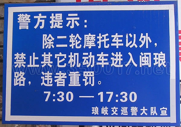 为整治琅岐817街交通拥挤状况,今年1月1日琅岐镇政府与交警大队联合公告,禁止除二轮摩托车外其他机动车在早上7点30分至下午5点30分从817街通过。这个交通管制措施极大改善了817街交通状况,受到广大群众的拥护。但是,最近以来,由于松懈了对817街交通的监管,不少车辆违章,公然在限时时段招摇过市。笔者在8月30日上午8点30分至9点做了记录,半小时里就有面的9辆、小车4辆、三轮摩托车5辆通过817街。对于这种监管放松,违章反弹的现象,群众颇多议论,我们希望引起有关部门注意,执法必严,要持之以恒,勿使规章制度夭折。