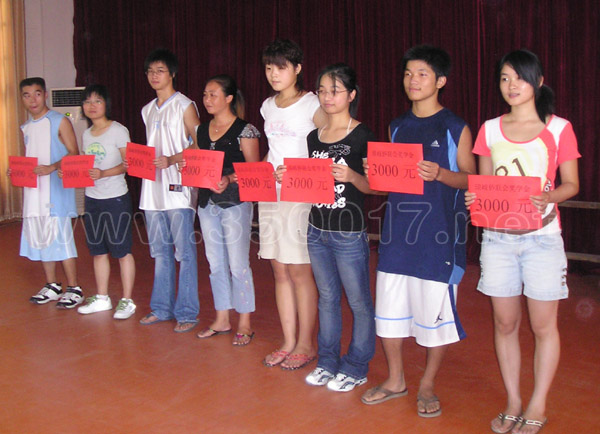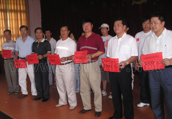 镇政府与侨联会领导向考上大学的学生颁发奖学金
