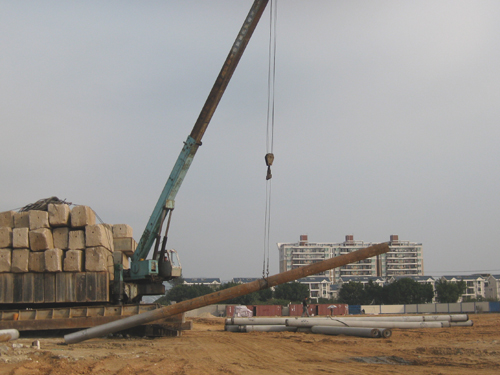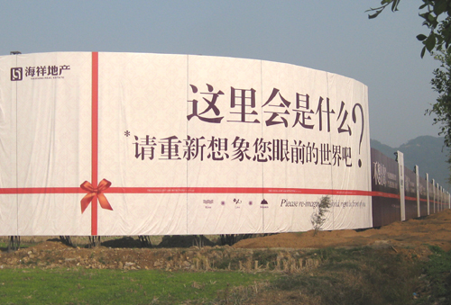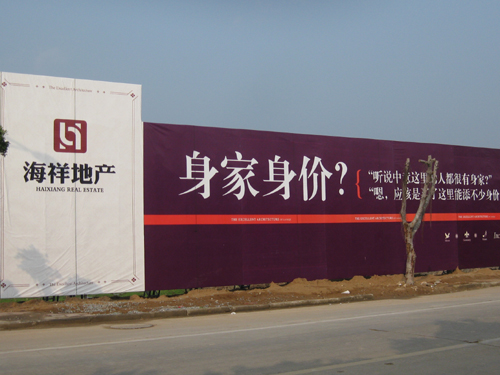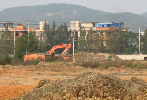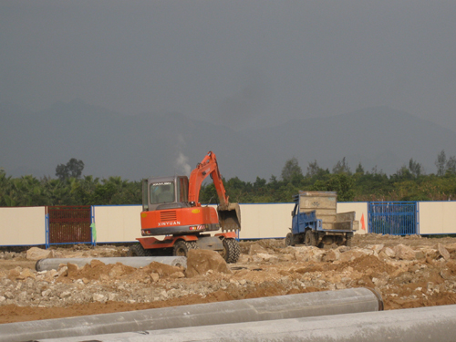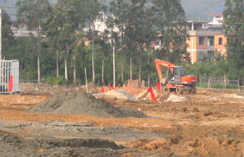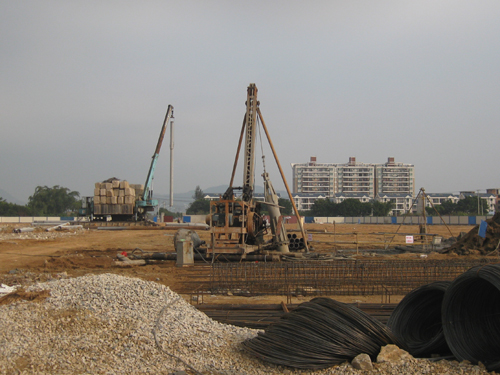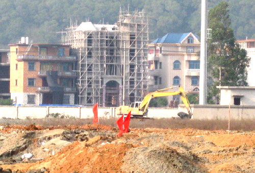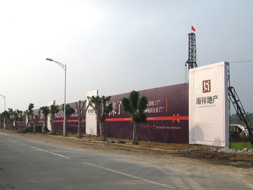 “海祥·琅琴湾”商住项目是琅岐第一个综合体项目,该项目位于琅岐经济区管委会东面,占地面积180.25亩。该地块今年4月15日,由福建海祥房地产开发公司以3.84亿元购得,国庆期间举行了隆重的动工仪式。笔者看到这里的工地也已经围挡,沿着通和路的大型广告栏很壮观,广告语言豪迈大气,可惜色彩简单,缺少建筑图案(项目示意图),不太引人眼球。围挡内土方充填基本完成,只有两三辆铲土机在平整土地,工地里有一台大型打桩机,但还没有进行基础管桩作业。工地比较冷清,看不到的工棚,缺乏热烈氛围。