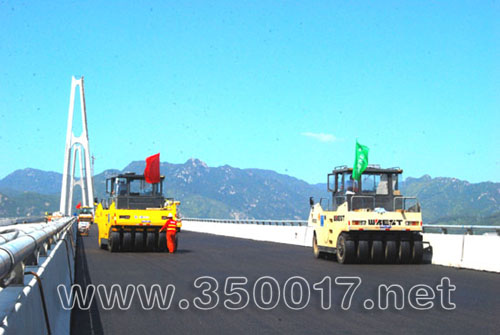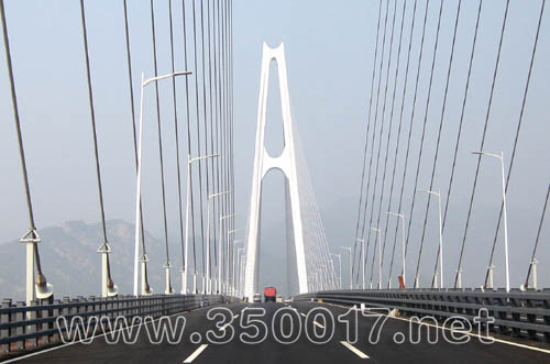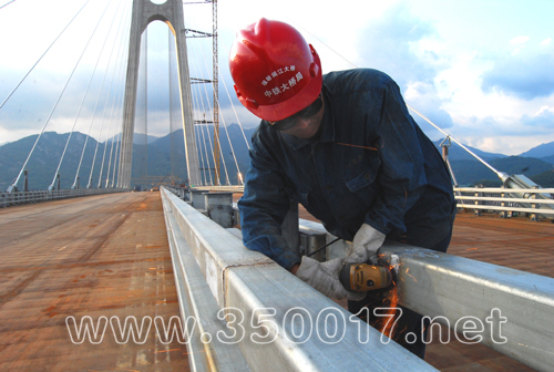 2013年7月15日,大桥主桥合拢之后,开始为大桥进行防撞护栏等施工。