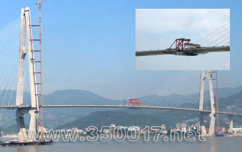 2013年1月19日,主塔完成之后,大桥进入钢箱梁斜拉索挂索施工。