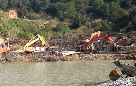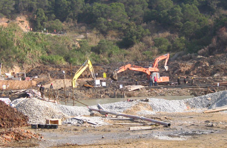 于2013年10月开始动建的琅岐高标准防洪堤工程,目前正积极推进,笔者看到承建单位福建省水利水电工程局有限公司 的项目部已经进场,许多挖土机、打桩机在运行作业,建设者们冒着闽江岸边的凌厉的寒风施工,现场十分动人。