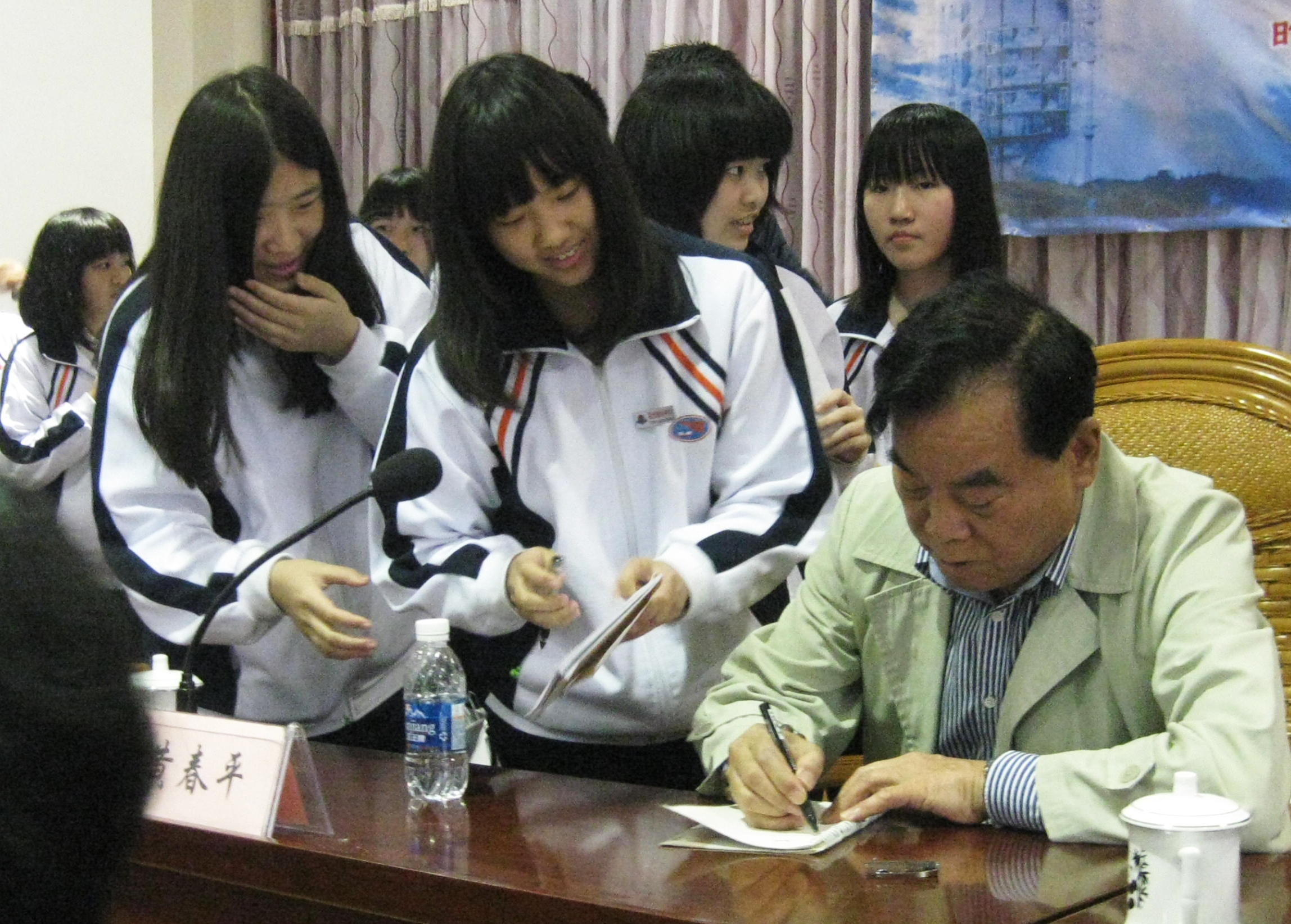 黄教授热情地为同学们题字留念