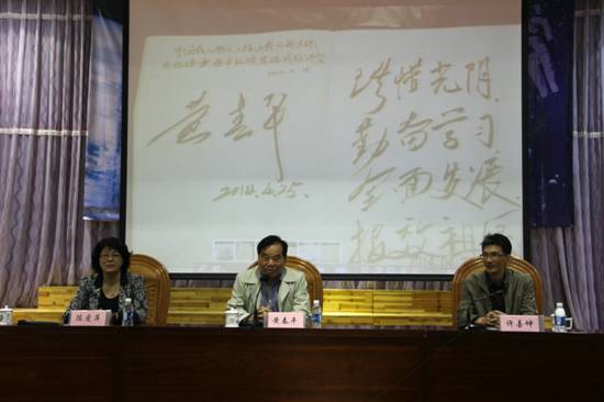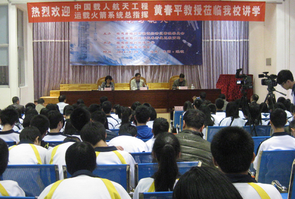 黄教授来到琅岐中学讲授《人类与航天》,师生欢呼雀跃,奔走相告。琅岐中学的多媒体教室座无虚席,过道上也站满了听众,省市多家媒体莅场采访。
