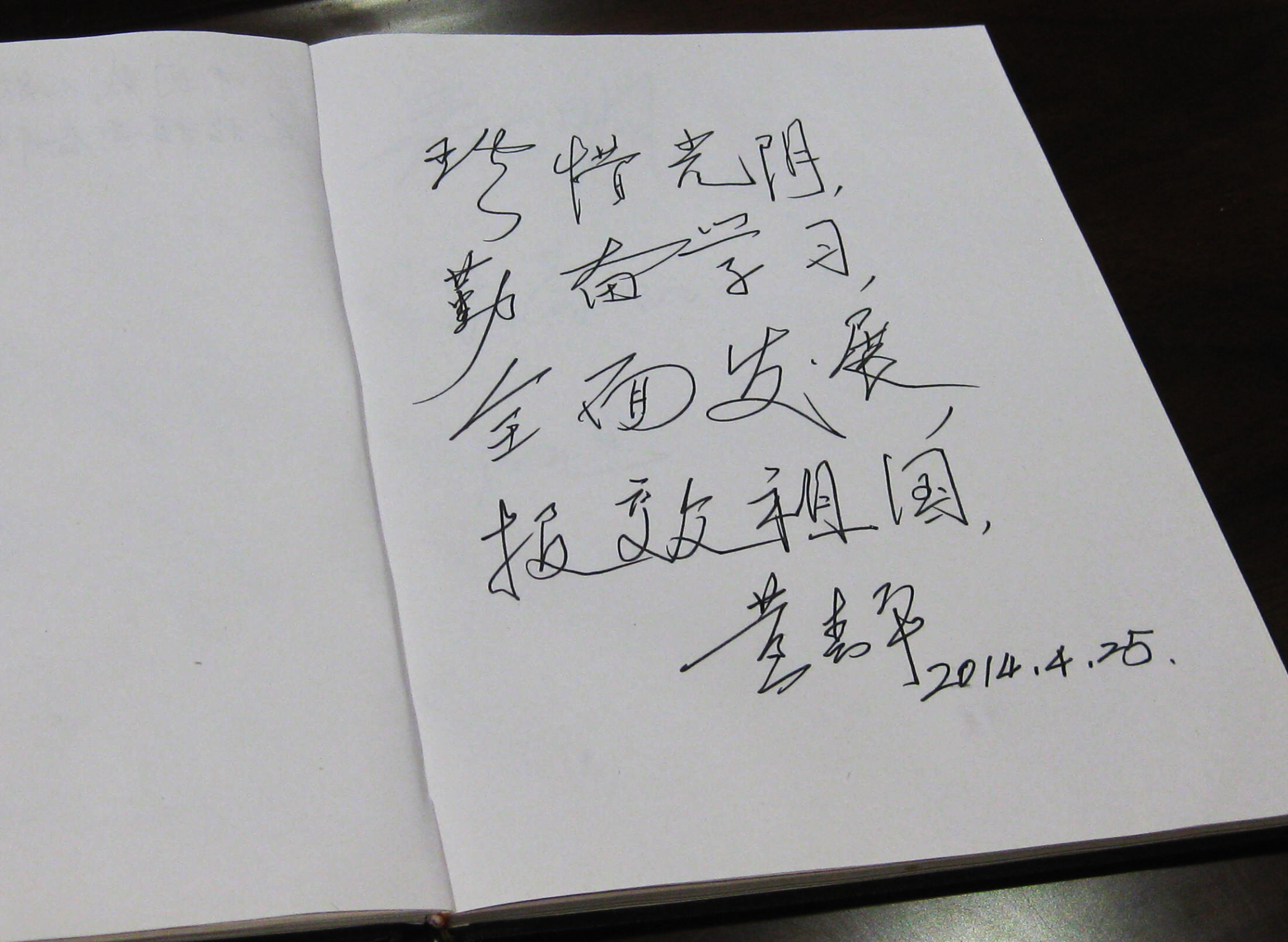黄春平教授为同学们题词