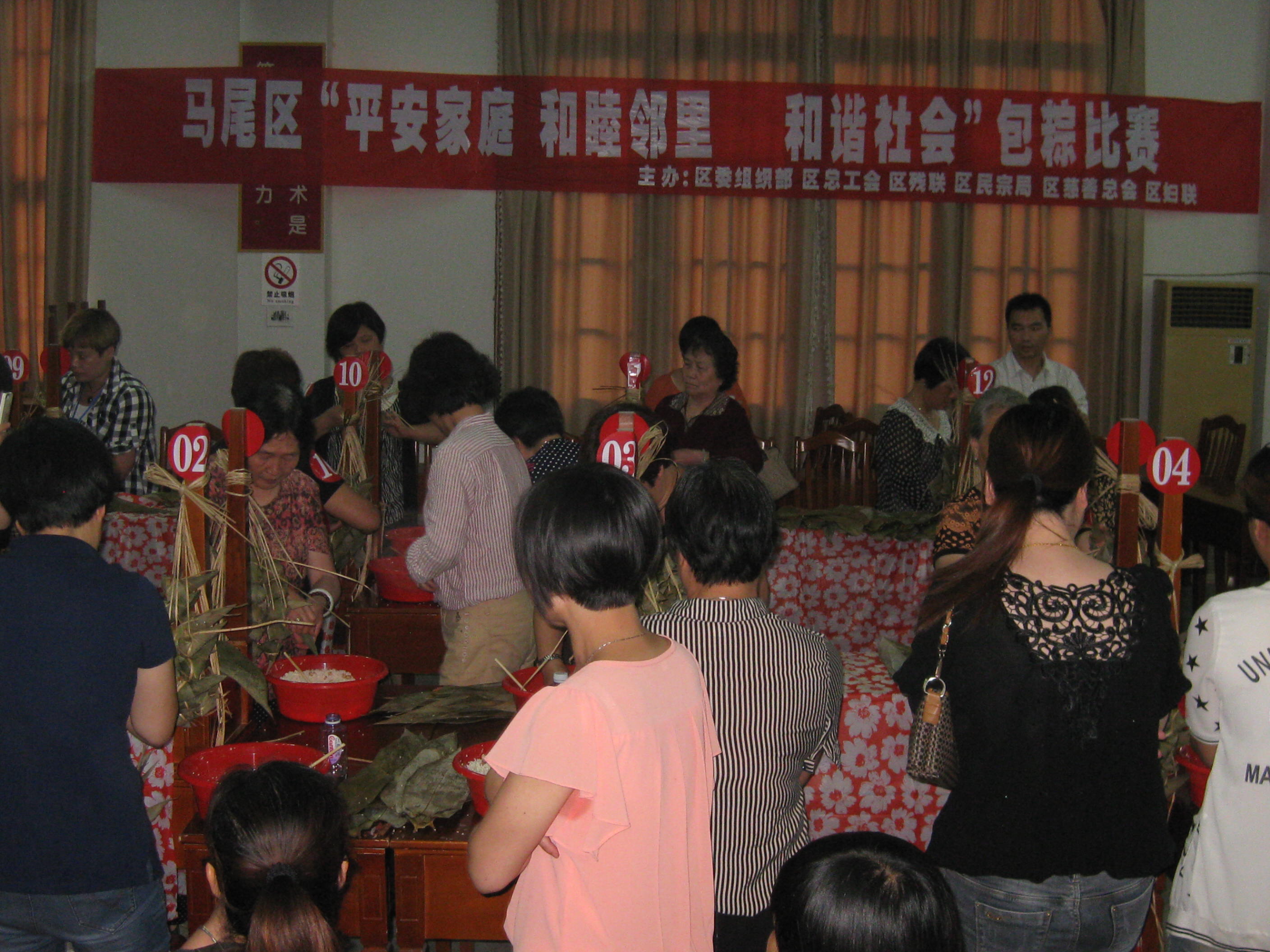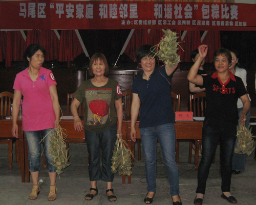 马尾区妇联5月30日在琅岐镇举办别开生面的“平安家庭,和睦邻里,和谐社会包粽子比赛”,