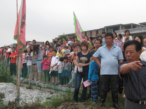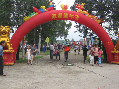 闽江村人口六百多,以“江、连”姓为主。原来村里有四艘龙舟,分别属“江、连”两姓的村民的。为了加强村民团结,建设文明和谐新风尚,村委会特别另外建造了两艘龙舟,划手全是“杂姓”的村民。今年六艘龙舟在琅岐雁行江竞技,你追我赶;岸上观众掌声、鞭炮声不断,好不热闹。为了保证划龙舟活动欢乐安详,村委会对活动进行了精心组织,并为全体登舟人员配备救生衣。