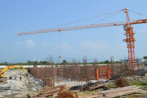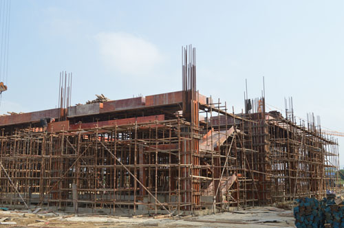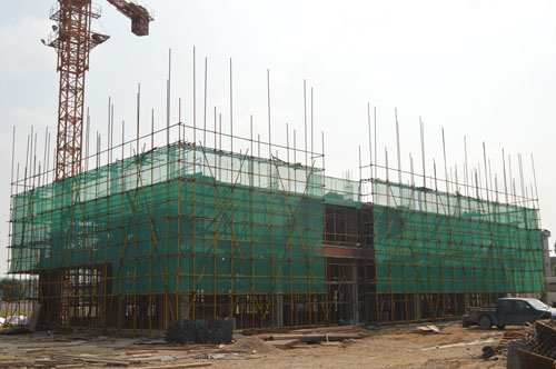 新琅岐医院建设工地位于琅岐中心幼儿园西北面,去年国庆节前夕正式动工,计划投资1.45亿元,将建有4层门诊楼,和9层综合主楼等。项目建设合同期为15个月,半年过去了,工程进展如何,引人关注。笔者近日前往探访,只见前面的 4层门诊楼的基础已经完成,正开始地面施工;综合主楼的地下层有2000多平方,显现规模,钢筋铺设已经完毕,即将浇灌水泥。工地气氛热烈,许多工人在忙碌,各种机械设备正在运行,施工车辆往来穿梭。