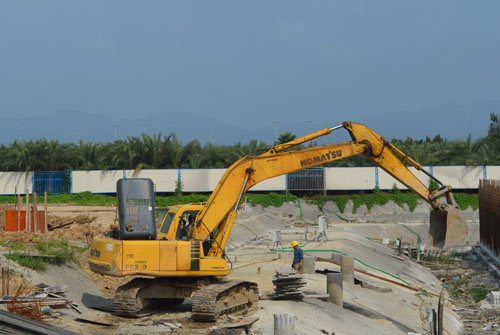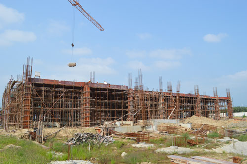一位施工人员说,新医院建设地块地质松软,地下全是淤泥流沙,门诊楼基础施工,和综合主楼地下层,建筑难度非常大,加上前段雨水多,地下水渗透严重,工地一片沼泽,耽误了很多时间。现在已经转入地面施工,天气也好了,进度将大大加快。他告诉笔者,现在每天投入近两百人施工,地面建筑会进展很快的。