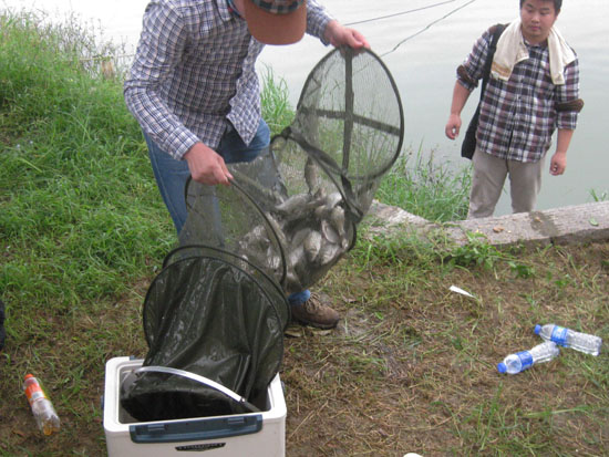 参赛选手们手执鱼竿在榕升休闲农庄的大鱼池四周池边摆开阵势。他们全副武装,器械精良。据说他们装备的钓鱼器具价值都在万元以上。只见选手上鱼饵、抛钓线,动作干脆麻利,令人赞叹。他们用自己良好的精神风貌和精湛的钓鱼技巧演绎了一场精彩的钓鱼大赛。随着水波漾起的浪花,觅食的鱼儿左一条右一条陆续被拖出水面,看着一条条鱼儿随钓线收入网兜,选手们脸上都洋溢着笑容。