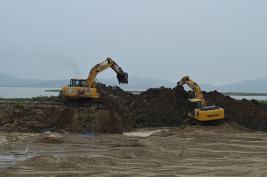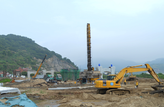 笔者到了隧道的另一侧(出口),这里机械凿石正忙,撞击声轰鸣;在离隧道出口不远处,各种机械一字摆开,机器声奏响激动人心的建设乐章。高架桥墩柱已经完成了9个,余下的2个墩柱模具搭建完毕,即将浇注混凝土进行定型。现场施工人员告诉笔者,200多米的高架桥桥体贯通,届时将非常壮观。他告诉笔者,高架桥之后衔接地面路,地面路基采用纯砂充填,现在每天有十几辆大型卡车在运送砂土。