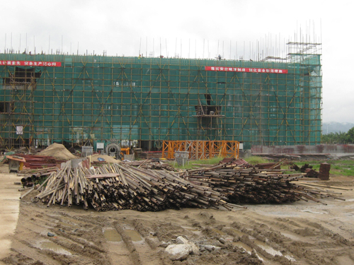 新琅岐医院由福建建工公司承建,去年10份动工,经过9个月紧张施工,施工单位克服建筑用地地质松软,地下多淤泥流沙,基础施工难度很大,以及前阶段多雨与台风的影响,耽误了施工时间。目前高四层的门诊楼即将封顶,九层的综合住院楼也将在下月封顶。工地负责人说,施工单位正与项目业主紧密配合,现在工地投入的工人每天有二百多,大家加紧施工,力争明年交付使用。