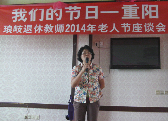 教育局局长陈爱萍发表了热情讲话,对长期从事教师事业的离退休老同志们表示由衷的感谢和慰问。她说尊老爱幼就是中华民族的传统美德,各位离退休老教师为了琅岐海岛教育事业的发展,在教师这个岗位上教书育人、艰苦创业、辛勤耕耘了几十年,创造了让人值得铭记的文化财富、物质财富和精神财富。琅岐片区学校所取得的成就是大家的艰苦奋斗和无私奉献的结果,它凝结着大家的心血和汗水,饱含大家的聪明才智和辛勤劳动。她希望各学校要在全面推进学校改革发展中,务必要带着责任、带着感情和智慧,努力为老同志办实事、做好事,做到在政治上更好地关心老同志,在日常生活中更多地帮助老同志,在工作上更充分地发挥老同志的积极作用。同时,要求在职同志要学习老教师忠诚无私的敬业精神、严谨细致的治学精神、诲人不倦的园丁精神、甘为人梯的奉献精神、爱校如家的主人翁精神、老有所为的乐观精神,进一步推动片区教育事业为马尾新城建设、开发区二次腾飞做出新的更大贡献!