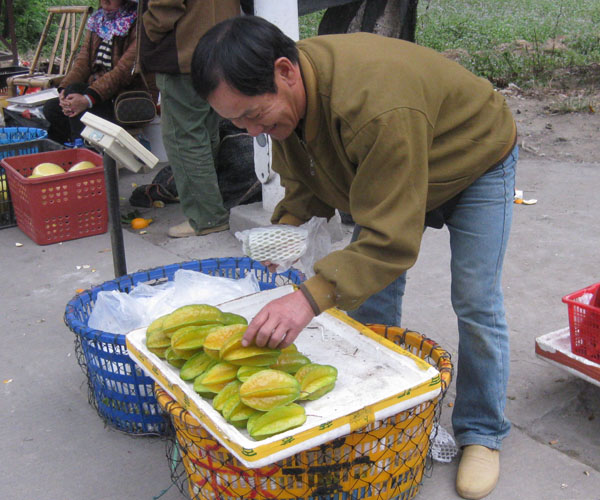 来到琅岐岛,在进岛路的两旁,随处可见果摊上摆有新鲜的杨桃,黄澄澄的美观形态,色彩鲜艳,喷发着诱人的清香,真夺人眼球,也让人垂涎。