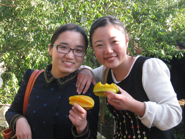 琅岐岛的水土特别适合杨桃的生长,种植杨桃有几十家,其中最具规模的是榕升农庄。榕升农庄里200多株杨桃树,长得茂盛,挂满果实。琅岐榕升农庄是福州市示范农业休闲农庄,杨桃种苗是从台湾引进的。在主人的精心栽培之下,杨桃以其独特的风味深受广大消费者喜爱。今年有闰月,气候季节原因,杨桃结果慢。果实尚未成熟就有不少人问津;现在刚刚开始收获,购买者便排长队等货,真是供不应求。