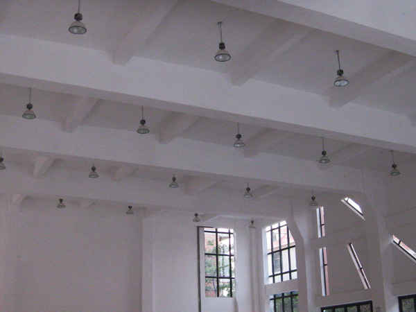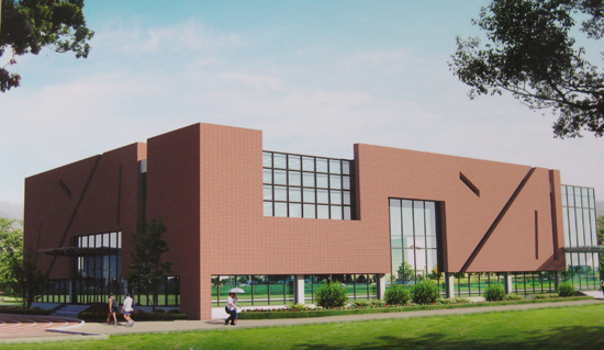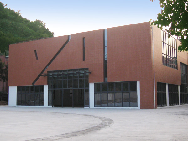 楼馆单层建筑,建筑889平方米,建筑高度为9.45米,跨度长度为37.9米,宽度为23.4米,为钢筋混凝土框架结构。目前场馆的幕墙、暖通以及消防等配套设施基本完成,即将开始铺设木质地板,安装艺体功能器具,并进行周边配套塑胶外操场、草坪、花坛等建筑。