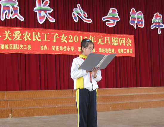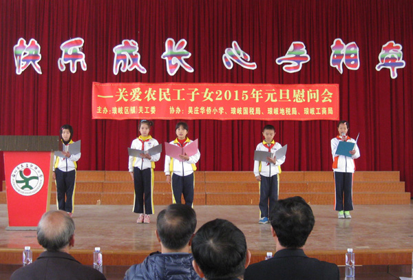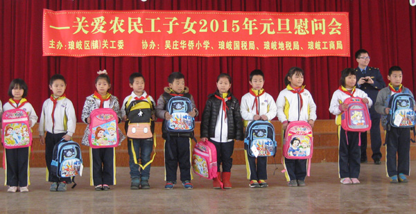 为了表示对农民工孩子的关怀,琅岐关心下一代工作委员会积极开展关爱农民工子女活动,新年元旦前夕,在吴庄小学举办迎新年慰问农民工子女“心手相牵,快乐成长”活动,向一百多位小朋友赠送新年礼物。这次活动得到了琅岐国税局、地税局、工商局的大力支持。马尾区关工委领导、马尾区教育局关工委领导等到场指导。