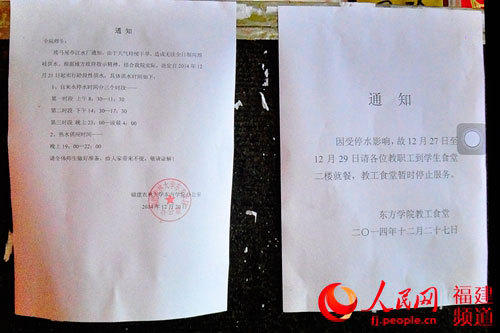 对此,福建农林大学东方学院办公室张主任向东南快报(微博)(微博)记者介绍,28日上午才临时决定在校非毕业班的学生全部提前放2个月寒假。具体内容已经通过校园网发至学院内部各系和班级。张主任说,这个决定是根据实际情况作出的相应调整,而水厂供水间断是提前放寒假的主因。