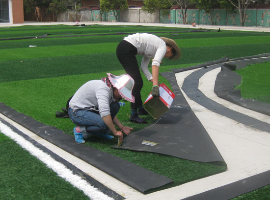 时尚的艺体楼已于去年10月份完工,并完成了室内外装修,800平方米篮球馆运动木地板已铺设,并安装有马尾区文体局赠送的标准篮球架。艺体楼外面的田径场正抓紧施工,工人正在铺设人工草坪。运动场面积4000平方米,(含200米跑道、7人制足球场、小学生篮球场)本月底即将完工。