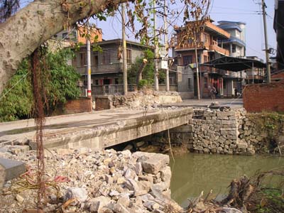 上岐勤耕村(犁头前)通往下井边,要过江浦,过去江面上仅铺设木桥,俗称“蝴蝶道透”,所谓“透”,其实就是独木桥。上世纪60年代,大搞“车子化”,这里建成水泥桥,但桥窄坡陡,交通多有不便。最近,上岐管理区在这里重修路桥,桥加寬了,路也平坦了,群众拍手叫好。真是又一个民心工程!