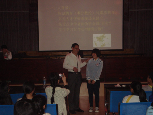 日前,琅岐中学校邀请福州著名青少年心理专家詹锦华老师来校给初三全体毕业生作考前心理辅导讲座。活动中詹老师不仅用大量丰富的案例向同学们讲述了考前应注意的一些事项,更用了大量的时间来和同学们互动,参加活动的同学们积极踊跃地上台与老师对话,有的向詹老师提出自己的困惑,有的主动告诉大家10年后自己最想成为什么样的人等等。通过活动,同学们不仅得到了自己想要的答案,更是了解到一个健康的毕业班学生应具备的心理状态。一个多小时的时间眨眼就过去了,活动后还有许多同学向詹老师索取签名。这次活动受到了同学们的热烈欢迎。