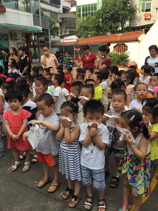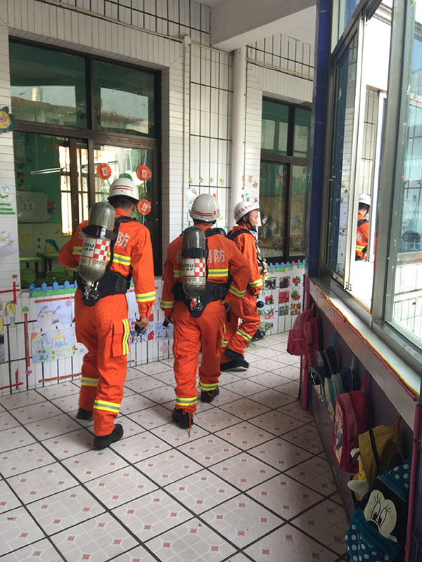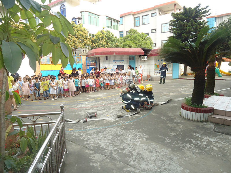 为了建立有效的防范和处理火灾事故的工作机制,进一步提高师幼消防安全意识,增强全员防火自救、逃生能力,2015年6月17日下午4:00,我园与琅岐消防大队携手成功地进行了消防逃生演练活动.演练中,从火警警报响起到师生全部从活动室撤离到校园安全区域,历时不到3分钟,整个演练过程做到快速安全有序。本次演练还特地安排了一个老师和三位小朋友留在活动室为被困在火中的人员。全体师生现场观摩了抢险人员争分夺秒地搜救工作及消防人员训练有素地一系列抢险救火工作。演练结束后,各班按指定的返回路线安全有序地返回教室,返回教室后,各班老师针对此次演练活动作了总结并对小朋友进行了相关的消防教育,这次消防演练活动增强了师生的消防安全意识对普及消防安全知识和提高学生自护自救能力起着重要的促进作用