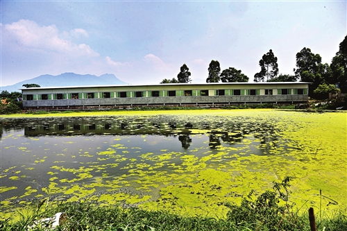 养猪场的蓄水池池水是处理后的污水,较清澈