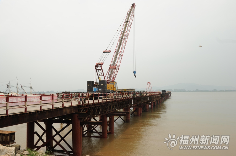 福州新闻网7月5日讯(福州日报记者 廖云岚 文/摄)昨日,记者在东绕城高速公路琅岐特大桥2号桥施工现场看到,位于长乐一侧的泽里村闽江边,施工方正在江上搭设辅助主桥梁施工的钢结构便桥。这标志着琅岐特大桥项目拉开施工序幕。