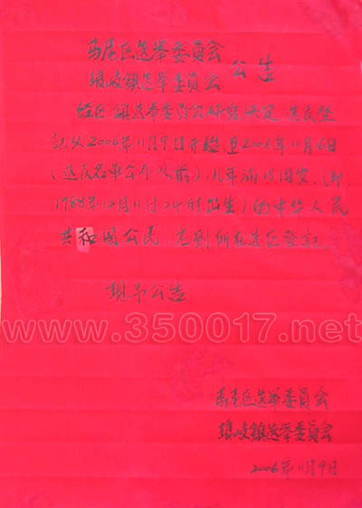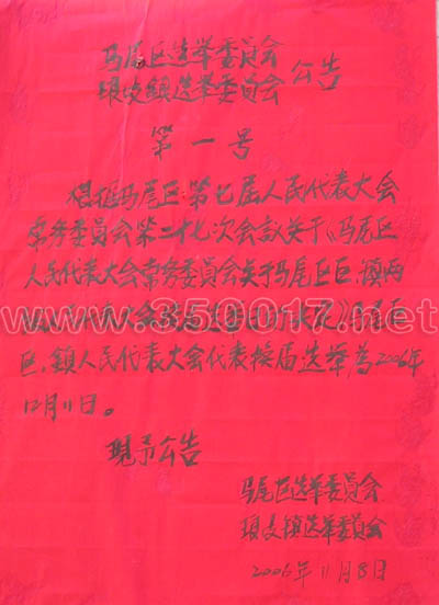 据琅岐镇选举委员会公告,琅岐镇即将举行人大代表换届选举,12月11日为选举日。