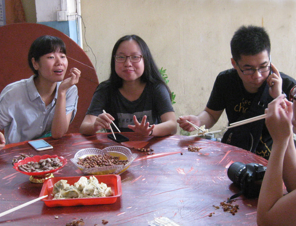 在星辉村老人会,彩旗飘扬,喜灯高挂,张贴有许多宣传精神文明建设的标语与展板。星辉村的男女村民们围坐一起,一边嗑蚕豆(田豆),一边谈论邻里好人好事。之后大家一起兴高采烈地包饺子,品尝饺子,现场气氛热烈、融洽、温馨。活动结束,大家临走还带上一包蚕豆,赠送给没来的邻居,将邻里之缘紧紧相缠。