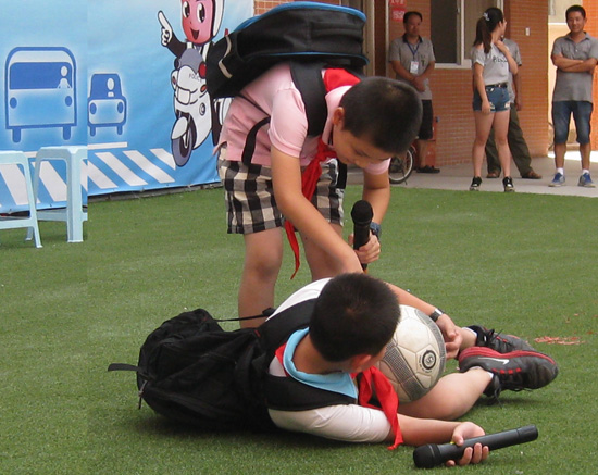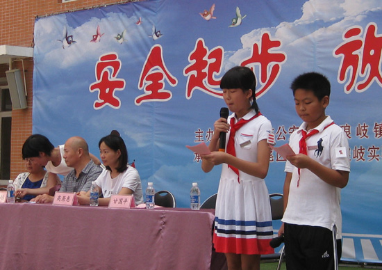 启动仪式上,小朋友还猜测与交通有关的谜语,自编自演了遵守交通规则的小品,并且宣读了“自觉遵守交通安全倡议书”。在这次活动中,琅岐公安分局还送来了校门口遮大伞,交通安全展板,以及安全教育的小册子、小物品。