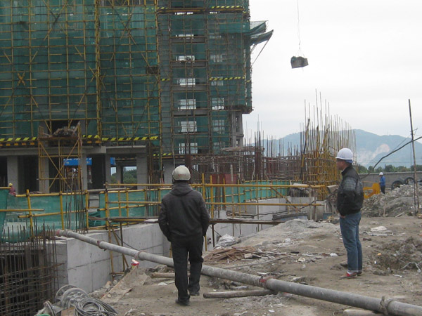 据工地负责人介绍,由于地质结构复杂,这里的地下全是流沙淤泥,楼房基础施工,尤其地下车场建筑难度极大,花费了大量时日。项目部为了保证质量,想方设法,采取许多新的工艺新的措施,整个工程基本按照计划的时间节点稳步推进。今年底即将全部完成主体建筑,明年春节过后,进行楼房外墙装饰,楼内安装水电,小区铺设通道,建筑小区景观公园,周边环境美化绿化等等,10月份会圆满竣工验收。