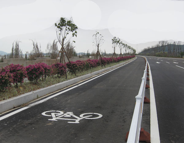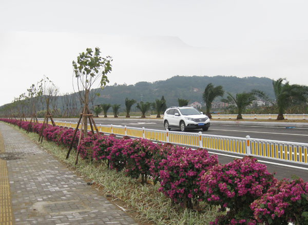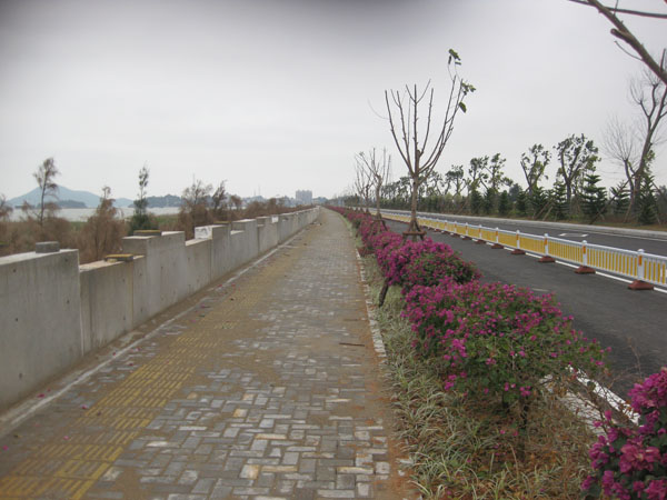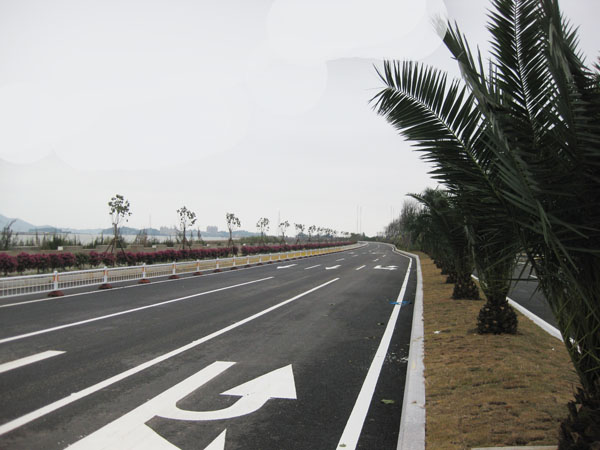 琅岐环岛路分四期建设,目前一期和二期(西北段)工程均已完成并通车。笔者近日在二期路段参观摄影,看到环岛路路面平坦,路标清晰,沿线具有大面积的绿化分车道,两侧绿化带,其中种植各种嘉树花卉。沿途闽水潺潺,海风习习,与道路相得益彰,形成美丽的滨江临海美景,令人陶醉。