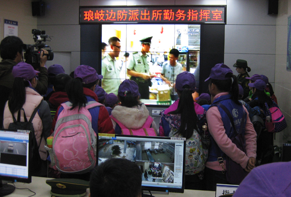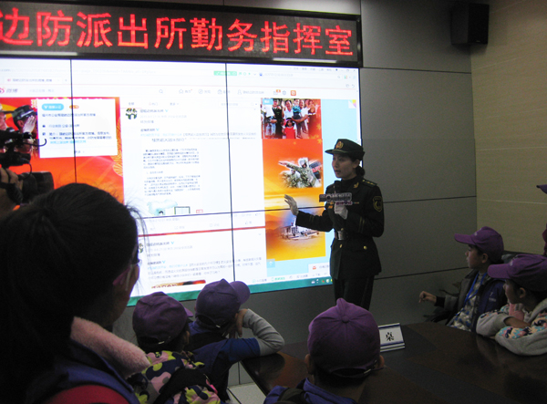 小记者们在琅岐边防所探访“琅岐边防所警区微博”平台。琅岐边防派出所的“微博”是全国10大基层政法微博十强之一,微博全力打造集宣传、服务、执法的警务微博,成为集新闻发布、安全防范、舆论引导、线索搜集、便民服务的网络平台。女警官的讲解,小记者们听得十分会心。