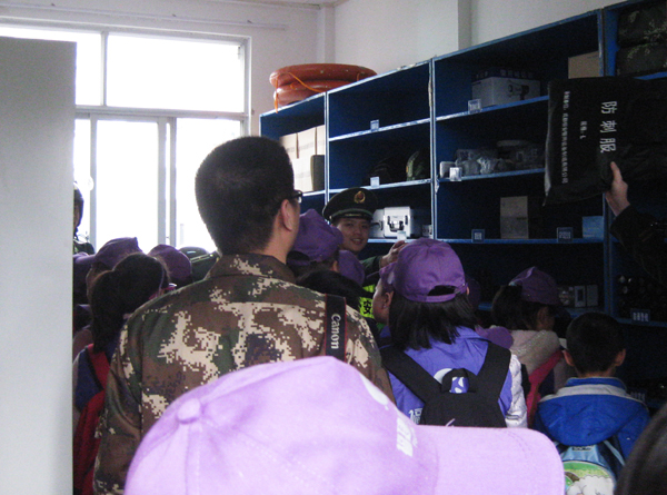 小记者们兴致勃勃地参观了边防所的“指挥室”、“装备室”、“侦讯室”和生活区,零距离体验了武警战士的不平凡的工作与生活。